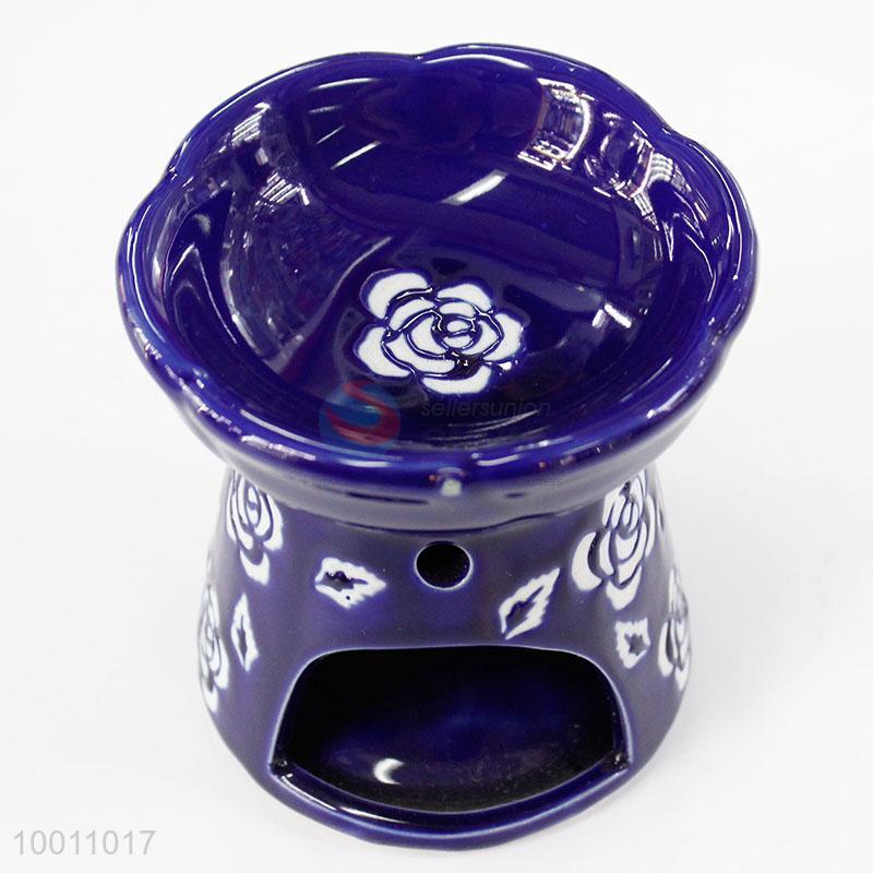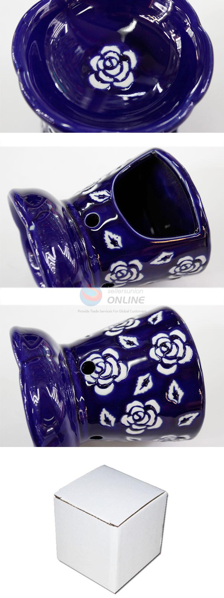 Unique Print Ceramic Incense Oil Burner Dark Blue