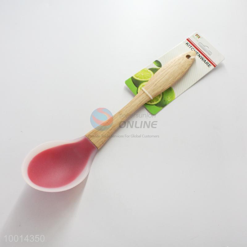 Silicone kitchen spoon with wood handle