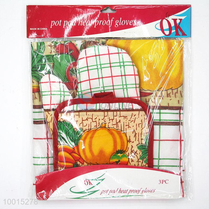 Wholesale A Set of Pumpkin Polyester Insulation Mat/Pot Holder,Microwave Oven Glove and Apron