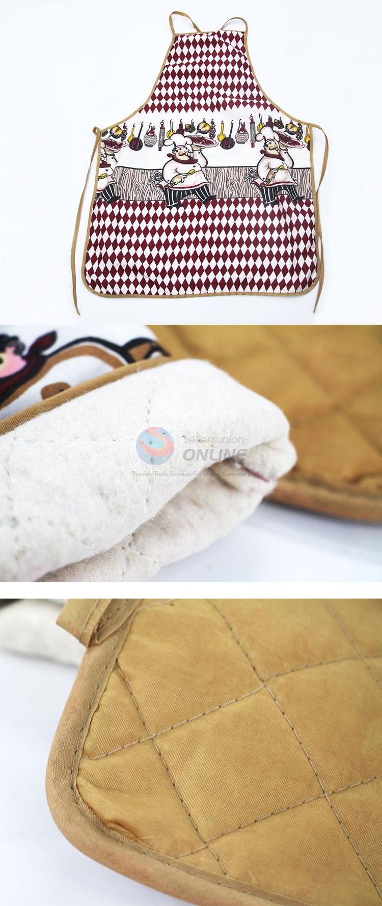 Wholesale A Set of Cartoon Chef Polyester Insulation Mat/Pot Holder,Microwave Oven Glove and Apron