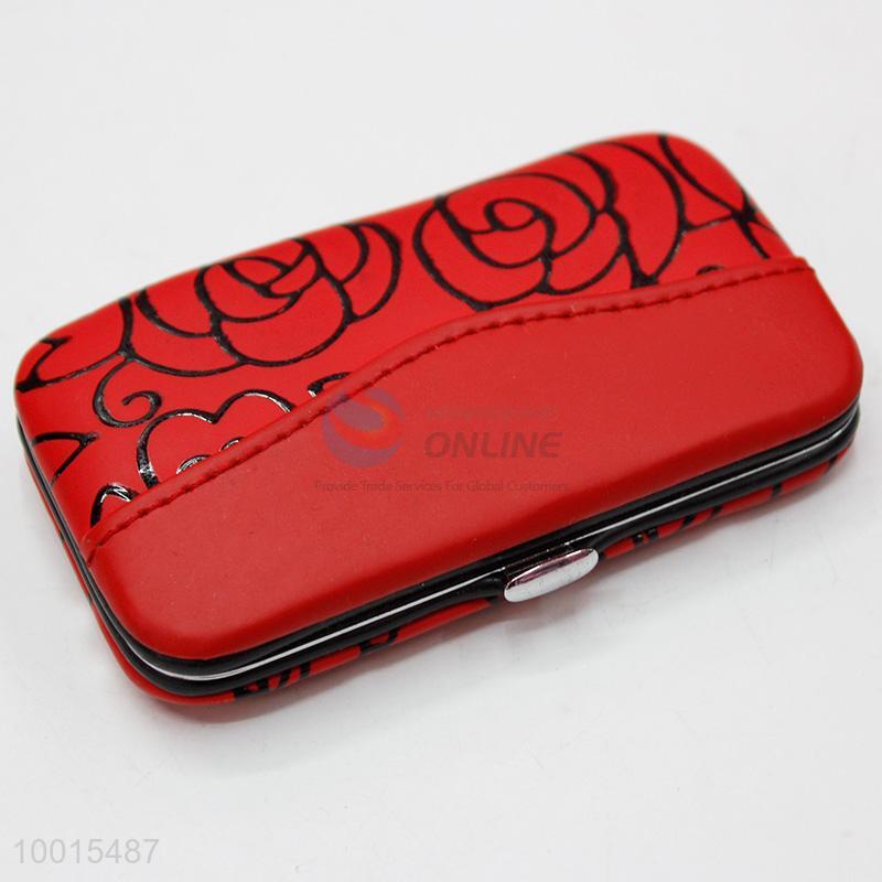 Red Rose Pattern Stainless Steel Women 7Pcs/Set Manicure Set Beauty Tools