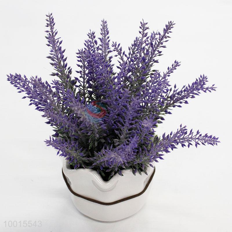 White Ceramics Flowerpot Artificial Lavender Plant
