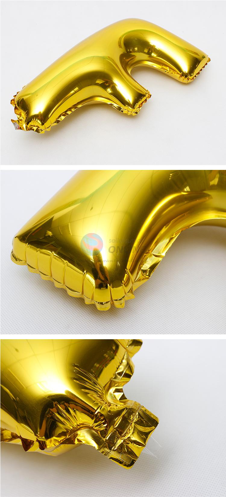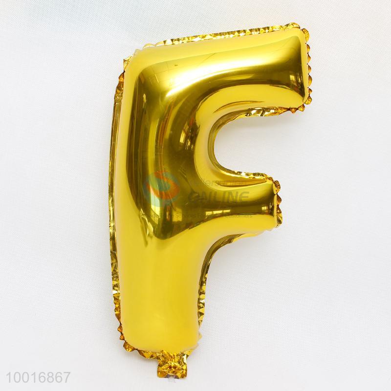 Letter F shaped gold foil balloon