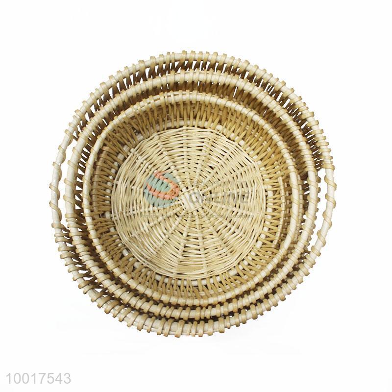 A Set of Round Wicker Woven Sundries Basket
