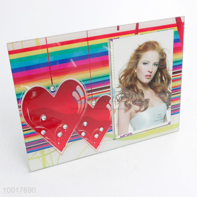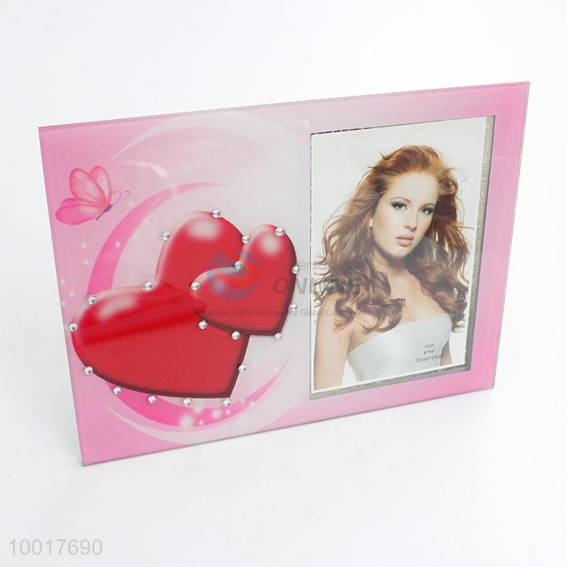 Pink photo frame with loving heart pattern