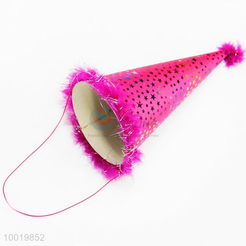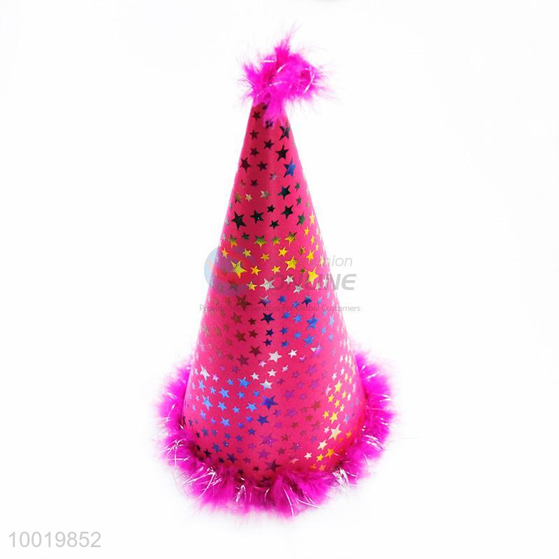 Rose Red Little Star Pattern Top Party Hat For Birthday
