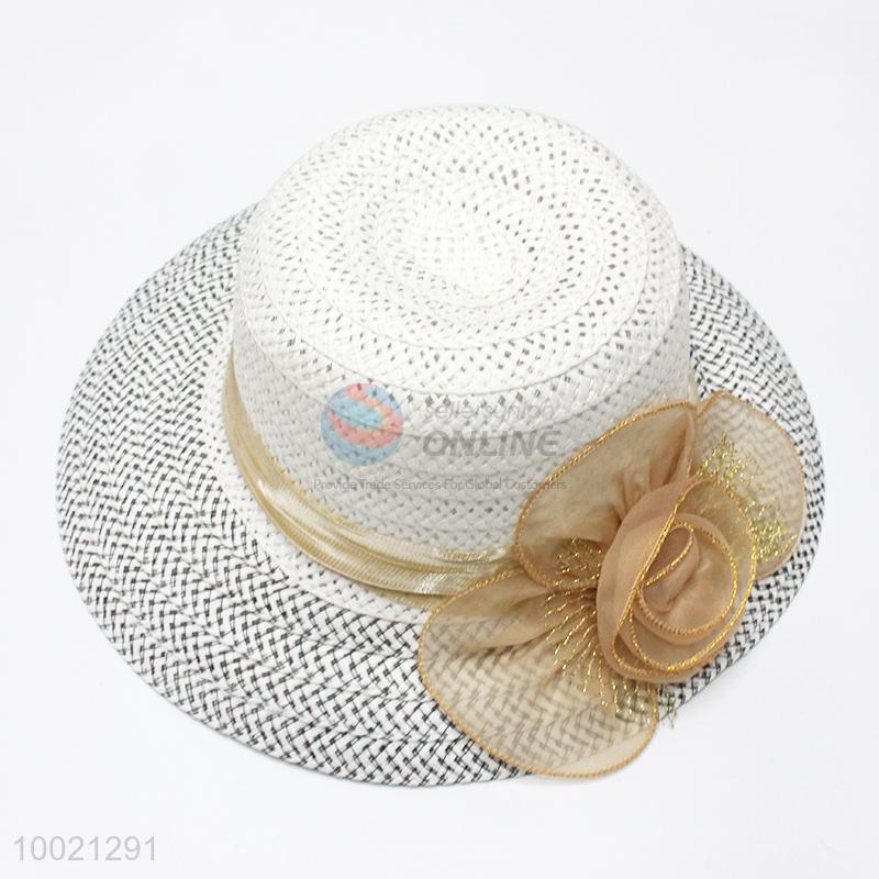 Straw Pattern White Summer Hat for Beach/Vacation