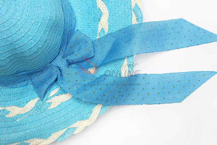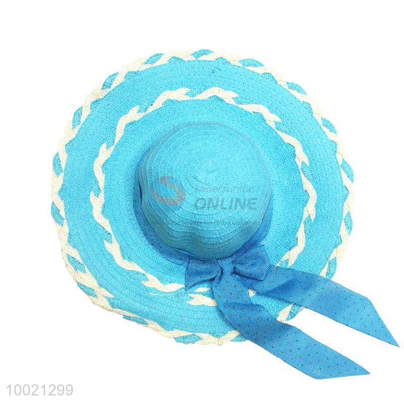 Competitive Price Blue Summer Beach Sun Hat with Bowknot
