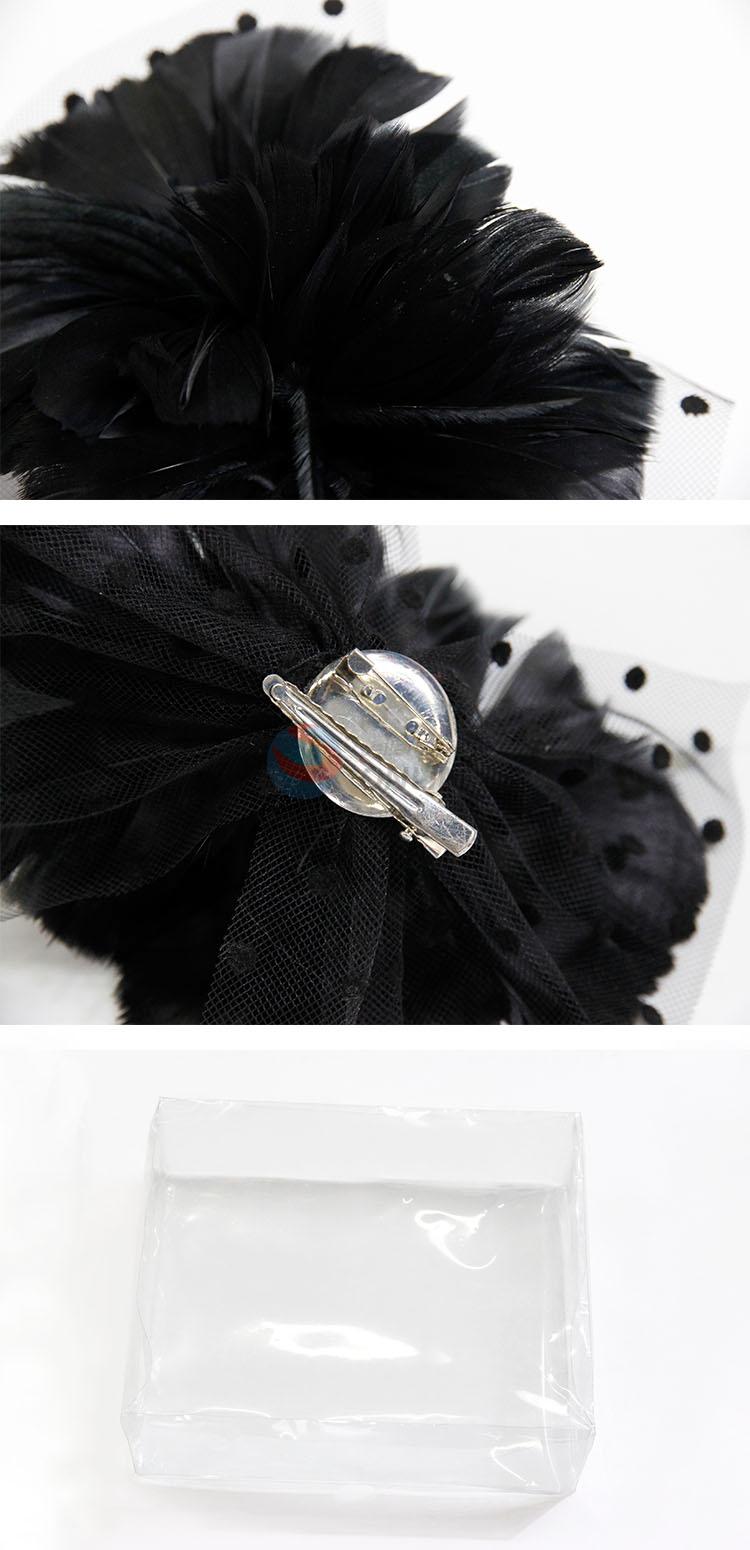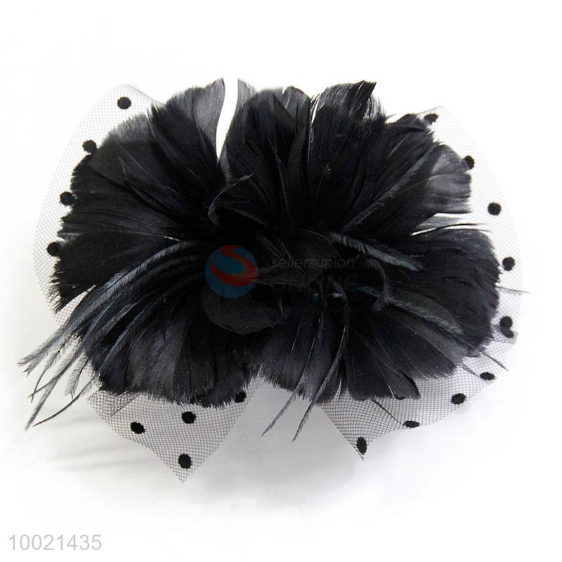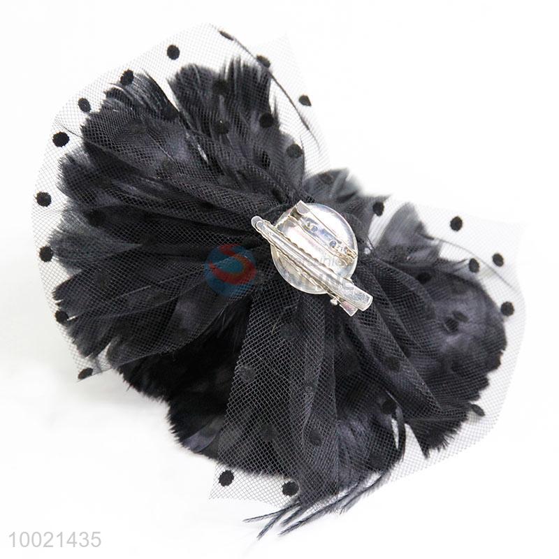 Black Feather Flower Mesh Bow Brooch and Hair Clips
