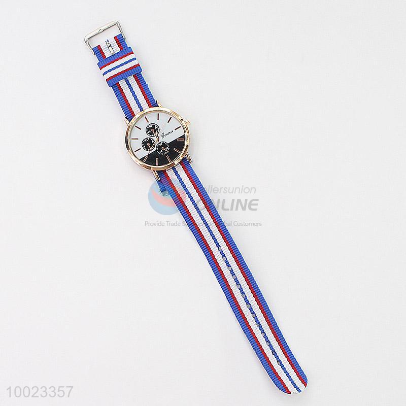 Wrist Watch with the Stripes of Blus, Yellow and Red