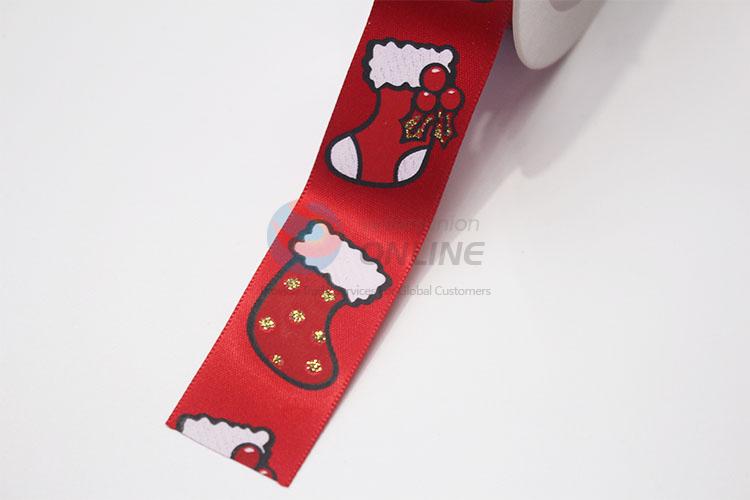 Hot Sale High Quality 3.8CM Christmas Stocking Print Ribbon