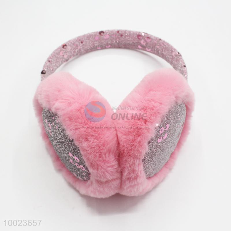 New design winter warm pink paillette earmuff for ladies