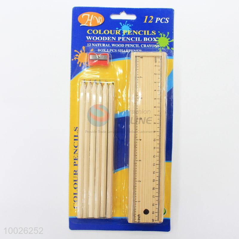 12 Colors Pencil with Wooden Box and Pencil Sharpener