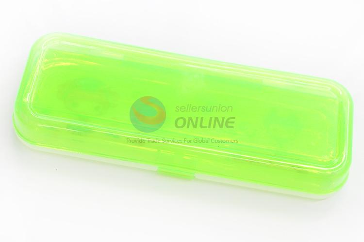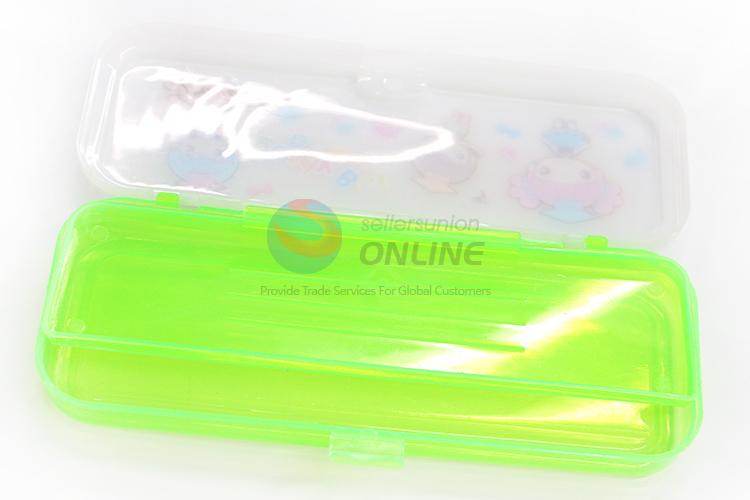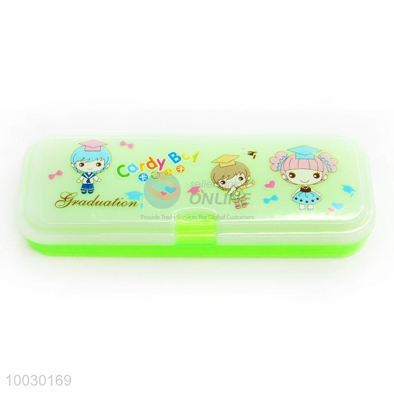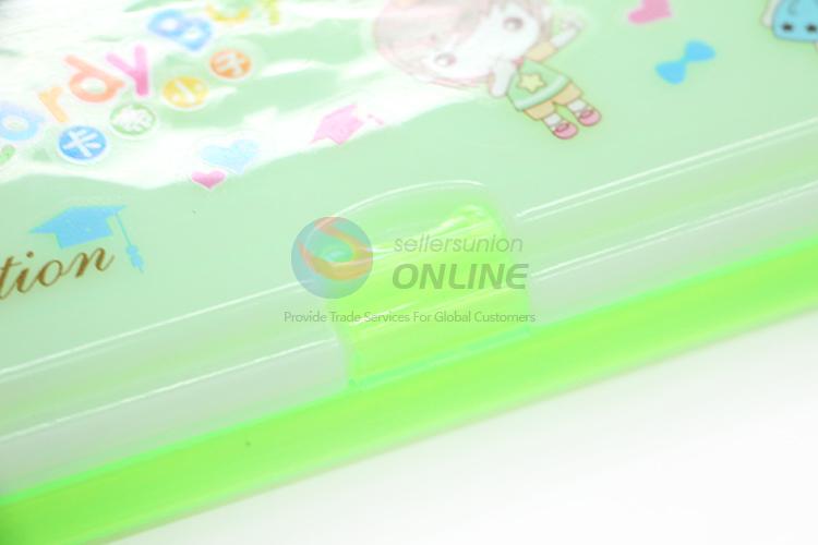 Beautiful Girls Pattern Green Transparent Plastic Pencil Box