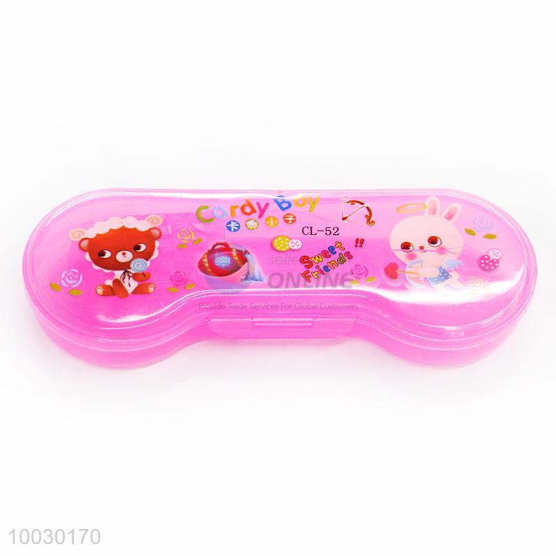 New Design Lovely Cartoon Pattern Transparent Plastic Pencil Box