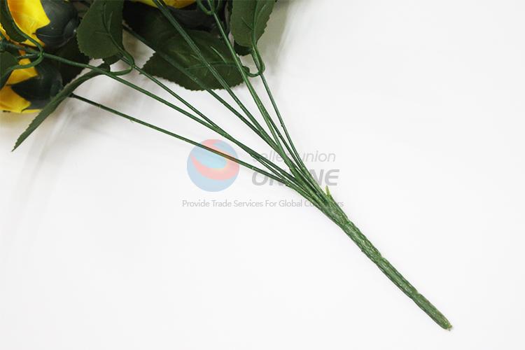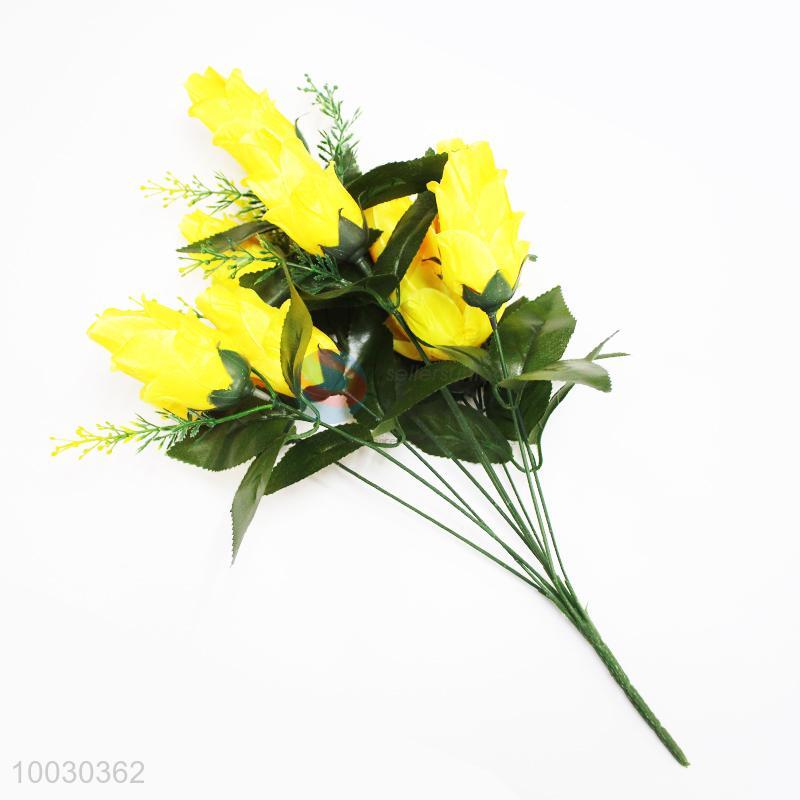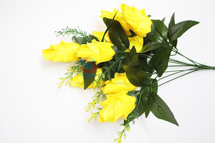 9 Heads Yellow Rose Bud Artificial Flower For Home Decoration