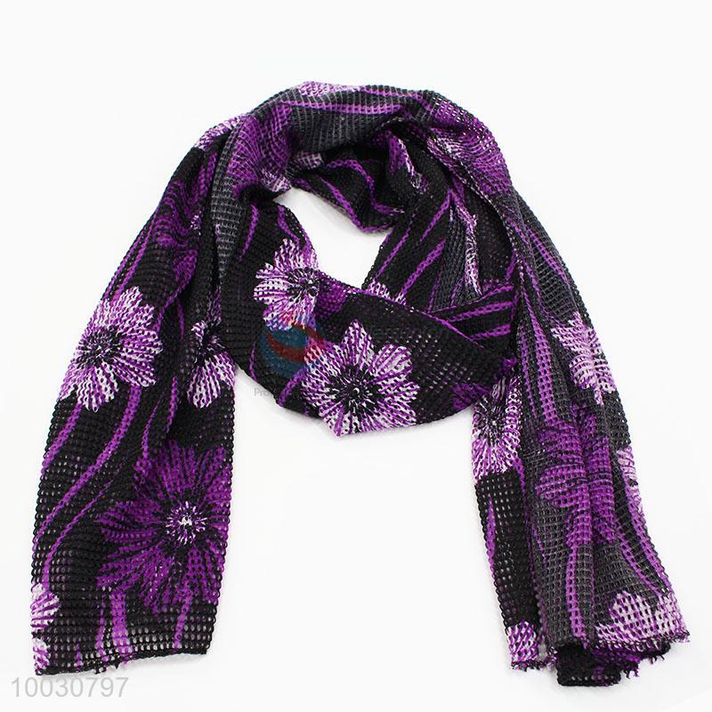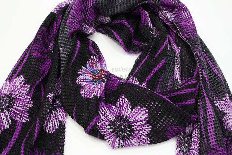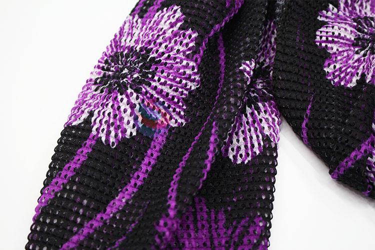 Wholesale Cheap Price Purple Flower Dacron and Spandex Scarf