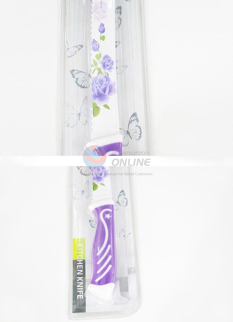 Purple flower pattern kitchen knife