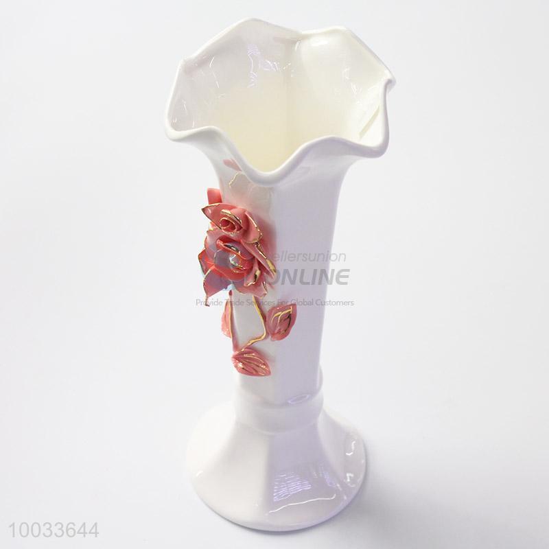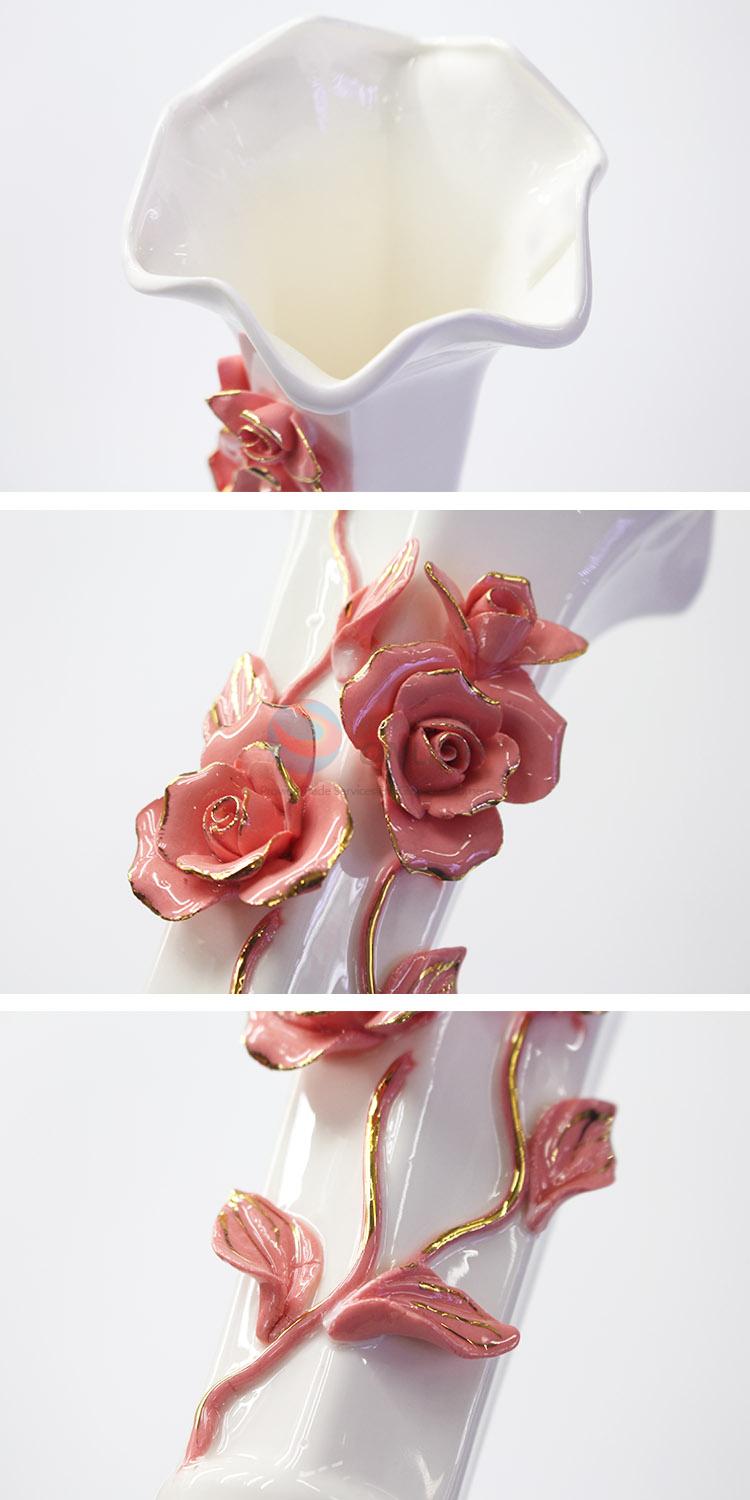 24.5cm Hot Sale Handmade Ceramic Crafts Vase with Three-dimensional Flowers Pattern