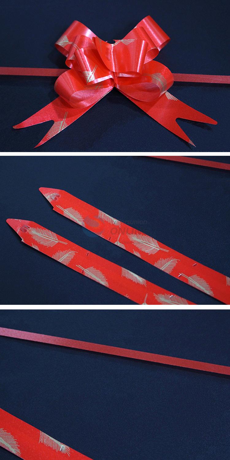 12MM Popular Red Gift Ribbon, Pull Bow with Leaves Pattern