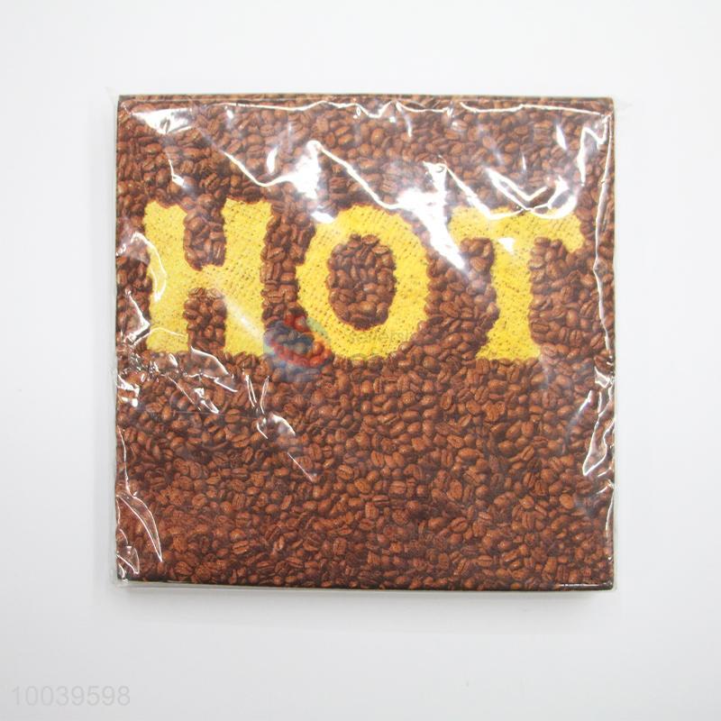 Yellow Hot Coffee Bean Pattern Square Napkin