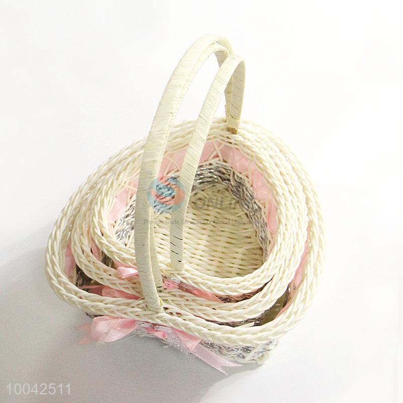 3pcs/set pink flower basket/decoration basket with handle&bow