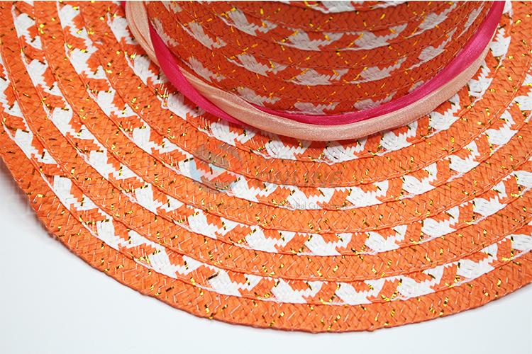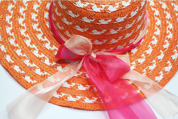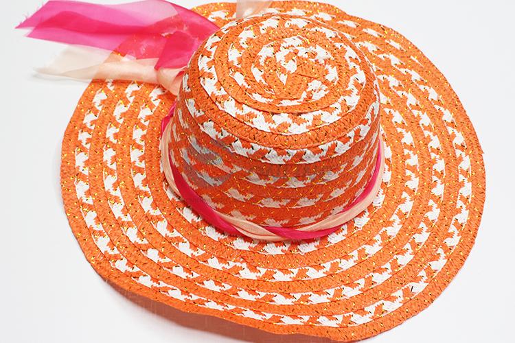 Orange summer paper straw big brim women hats