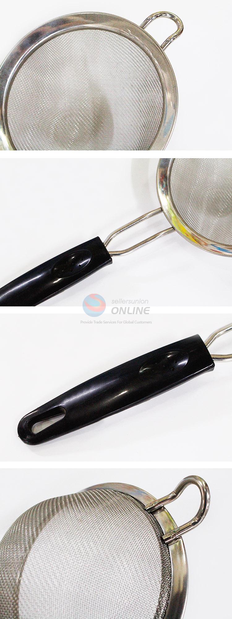 High Quality 14cm Stainless Steel Mesh Strainer with Black Plastic Handle