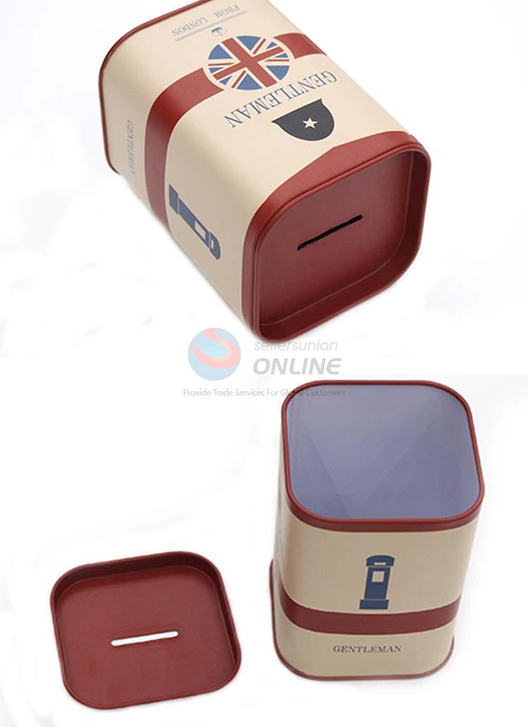 2016 Wholesale high quality square shape red coin tinplate money box for sale