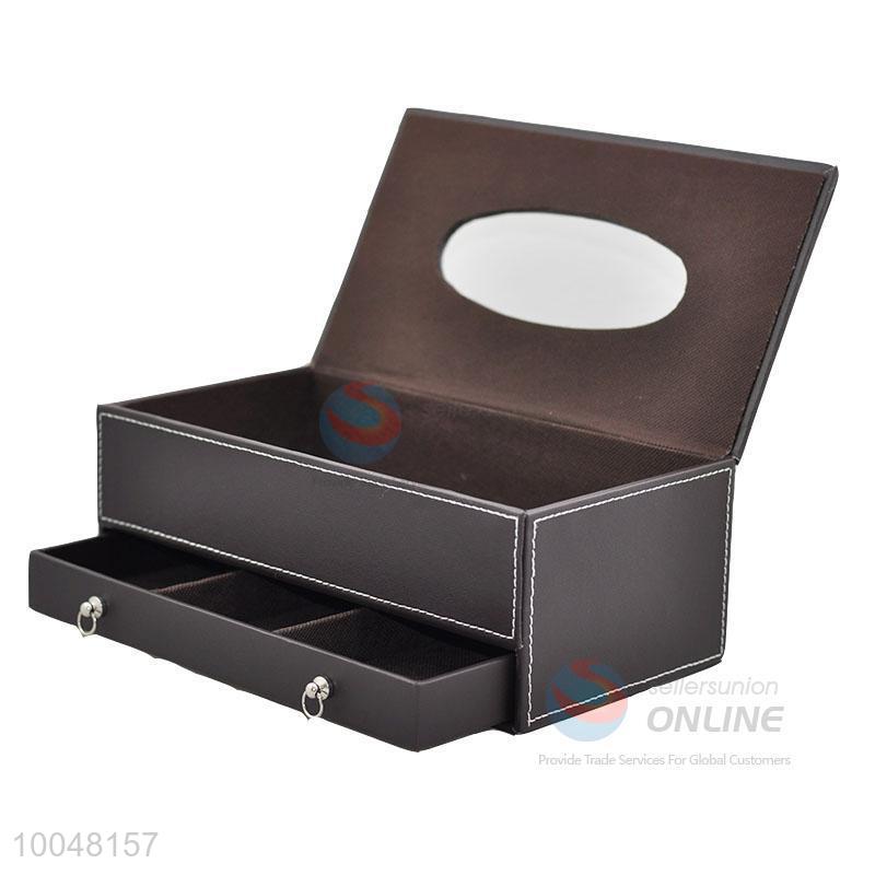 Functional household/office faux leather tissue box with drawer