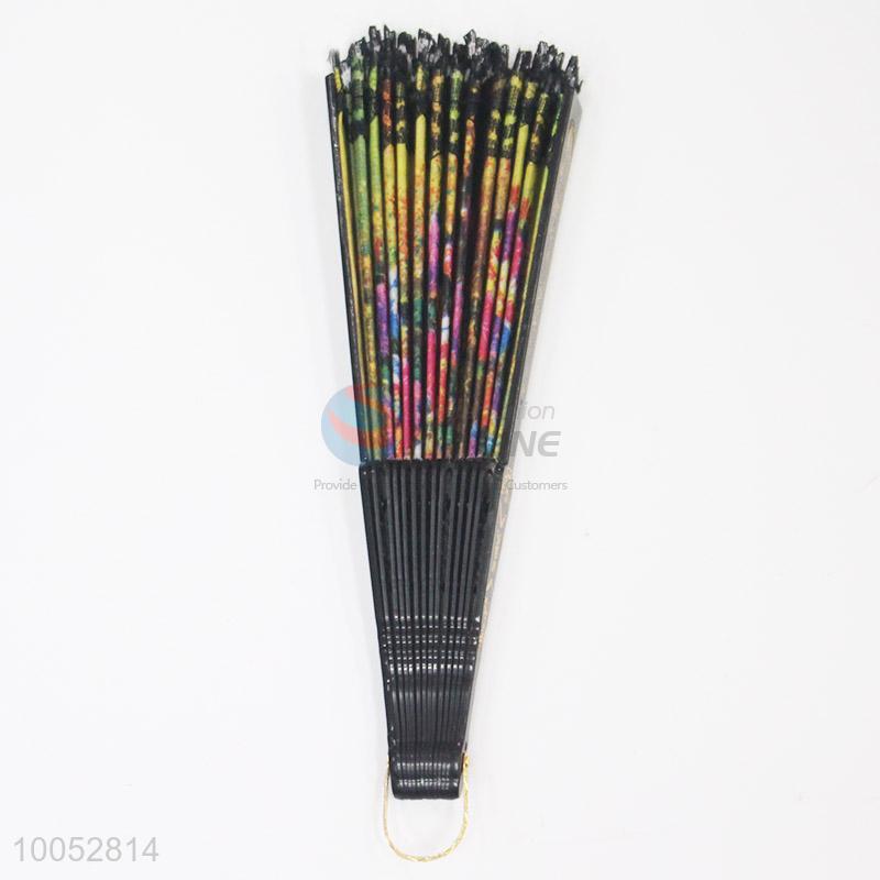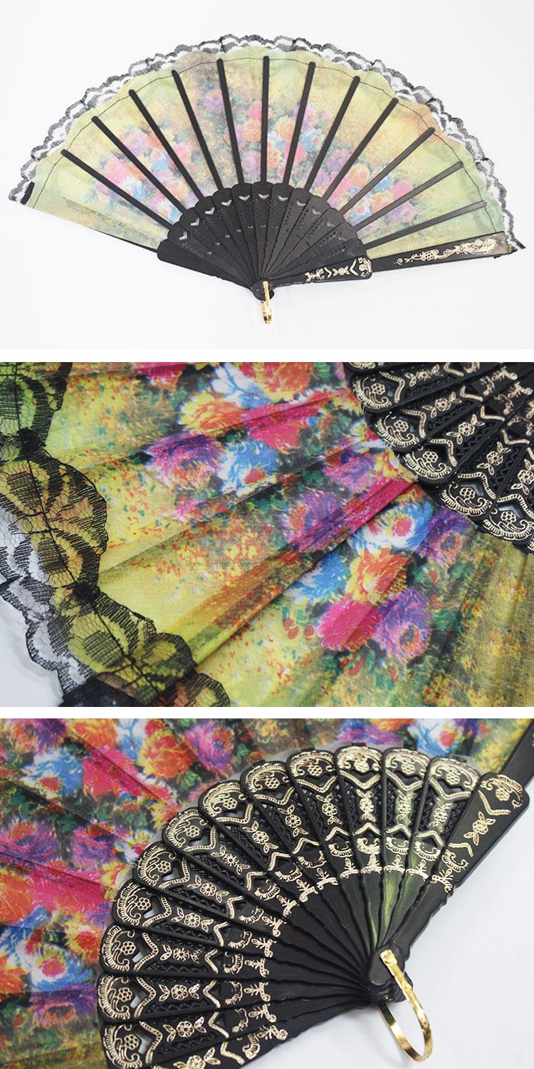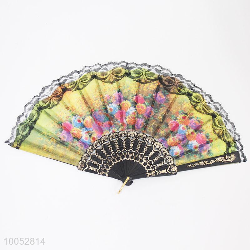High Quality 23*43CM Folding Hand Fan with Black Sticks&Lace and Colourful Flowers Pattern