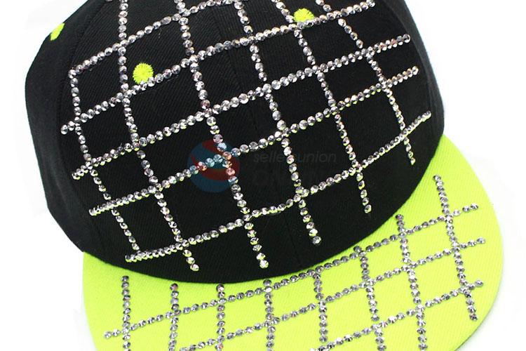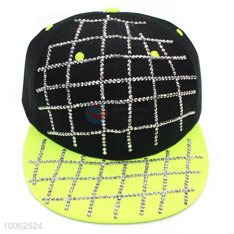 Fashion diamond-studded check style peak cap for outdoor recreational sports
