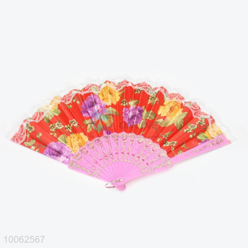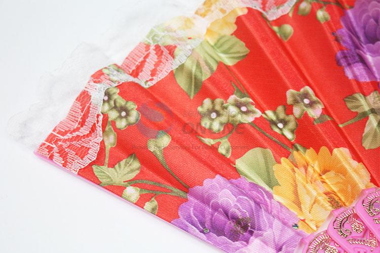 Hot Sale Spain Style Plastic&Satin Red Handle Hand Fan