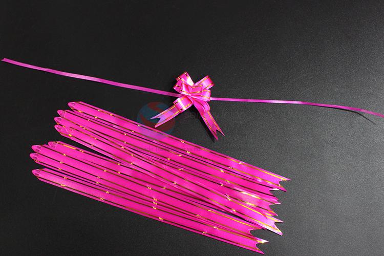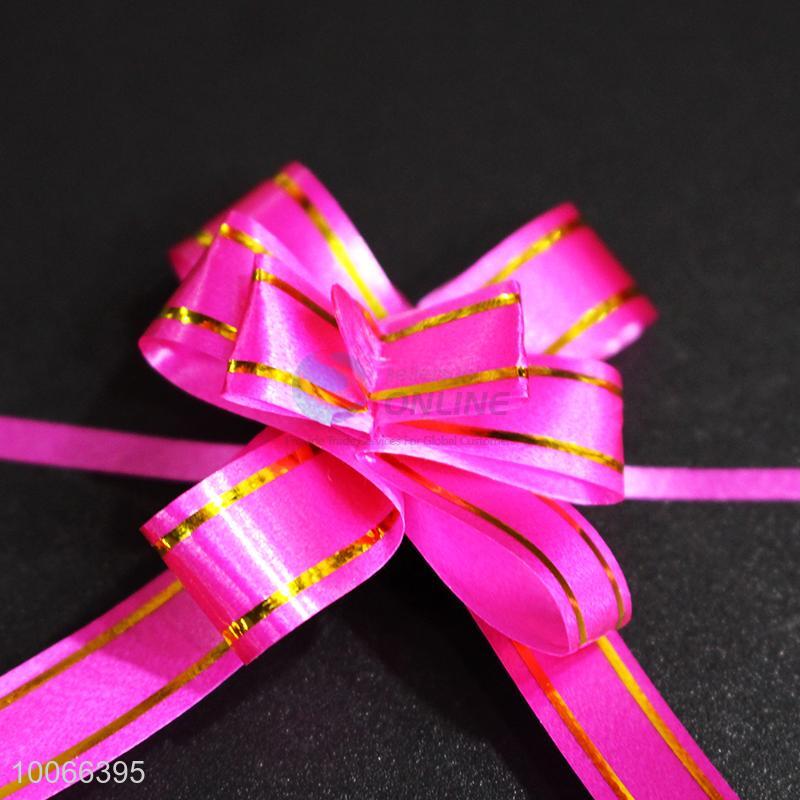 Rose red ribbon pull bow/pull flower with gold edge for gift packing,wedding flower packing