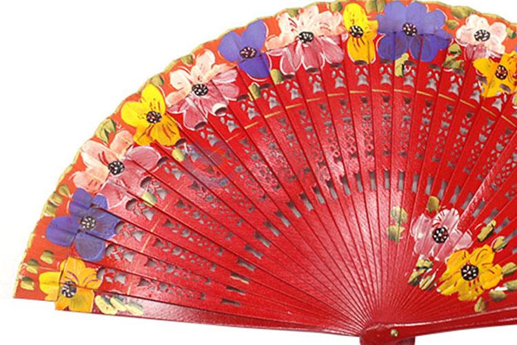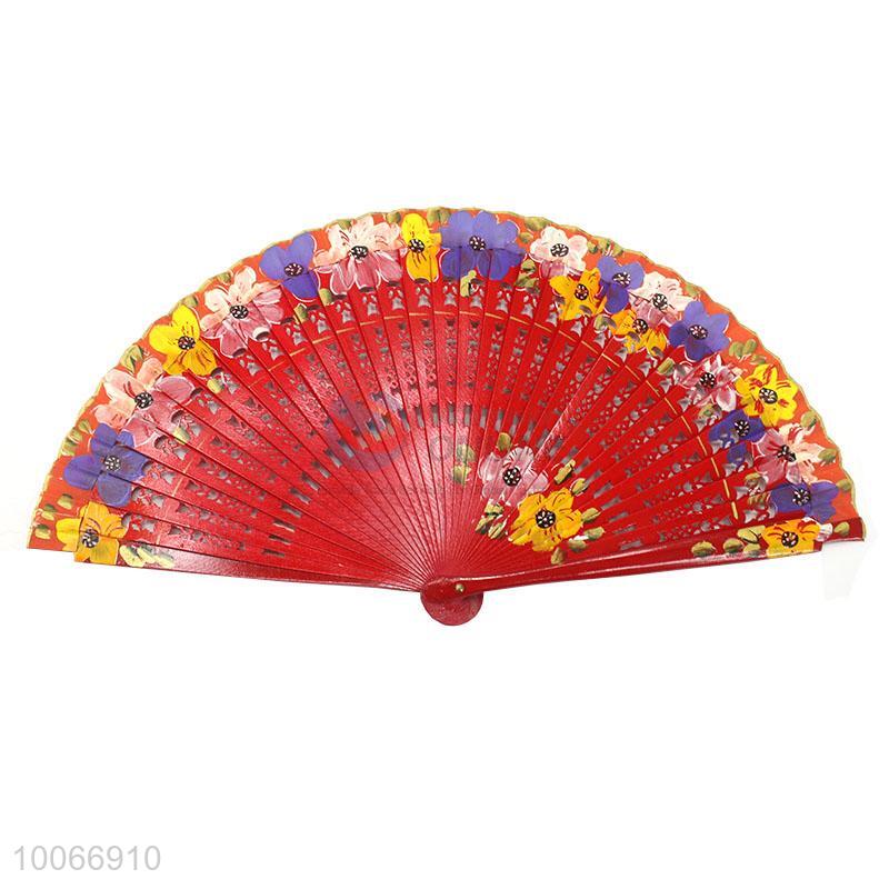 Wholesale printed folding promotion gift hand fan wooden single face fan