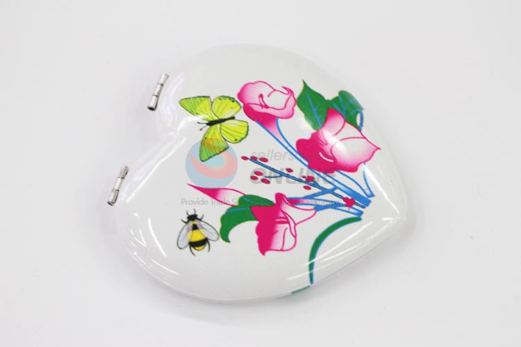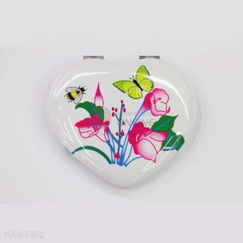 Morning Glory Pattern Heart Shaped Foldable Pocket Mirror