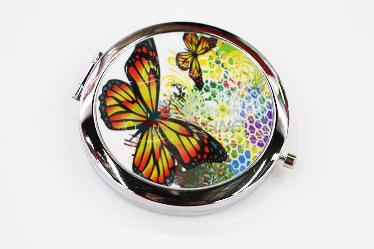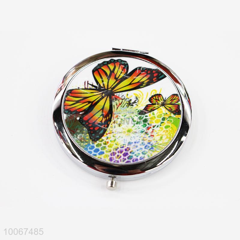 Butterfly Round Foldable Pocket Mirror with Metal Border