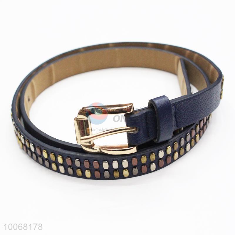 Wide PU belt with rivets for women