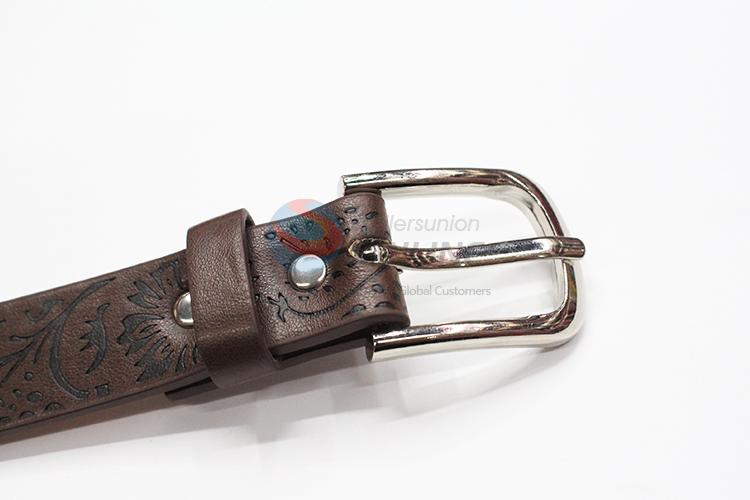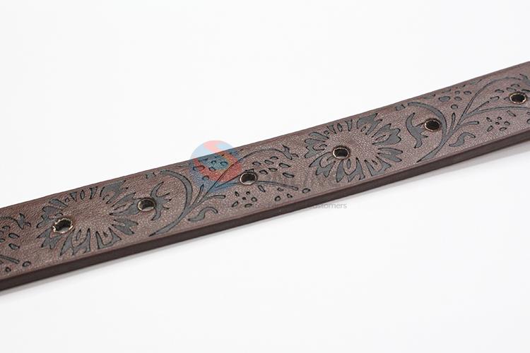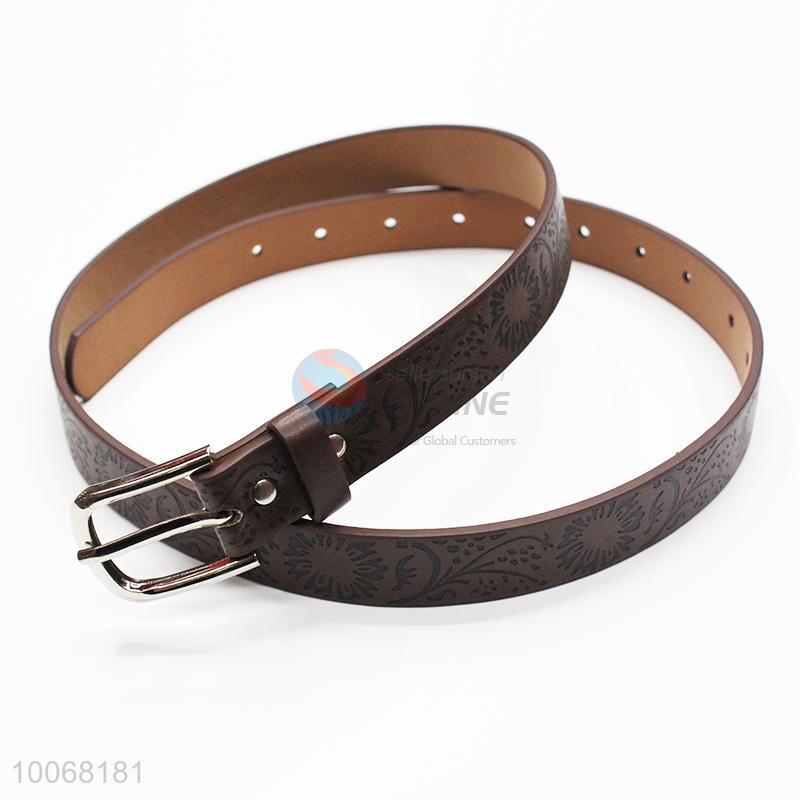Brown PU belt with embossion pattern for women