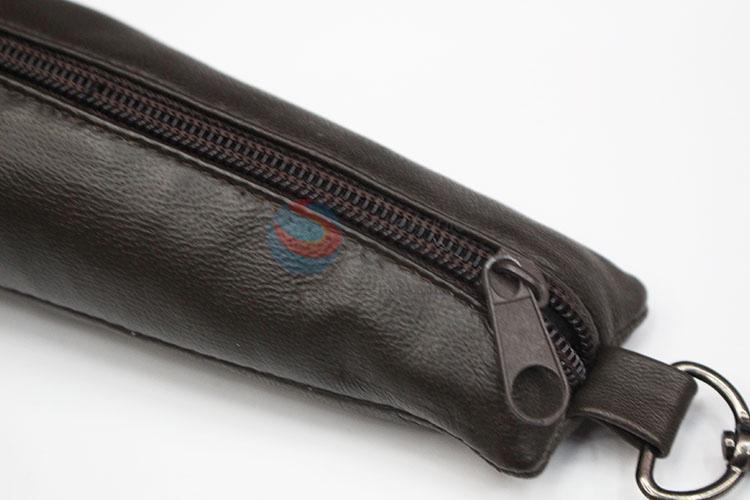 Brown faux sheepskin leather coin purse with D buckle