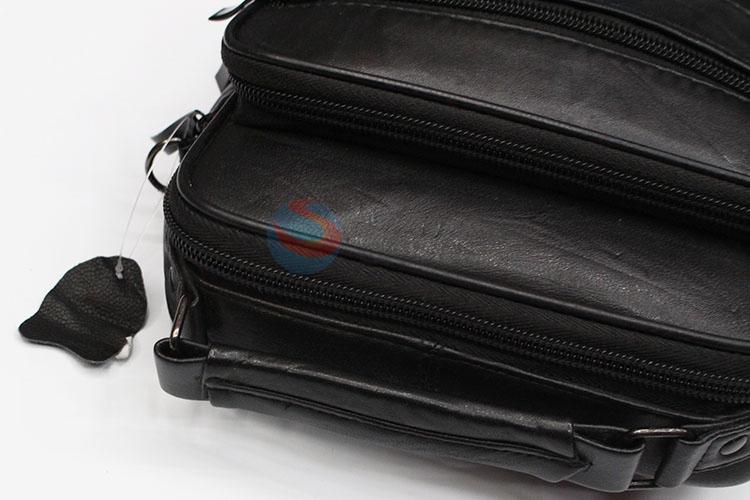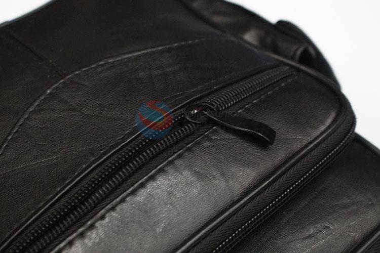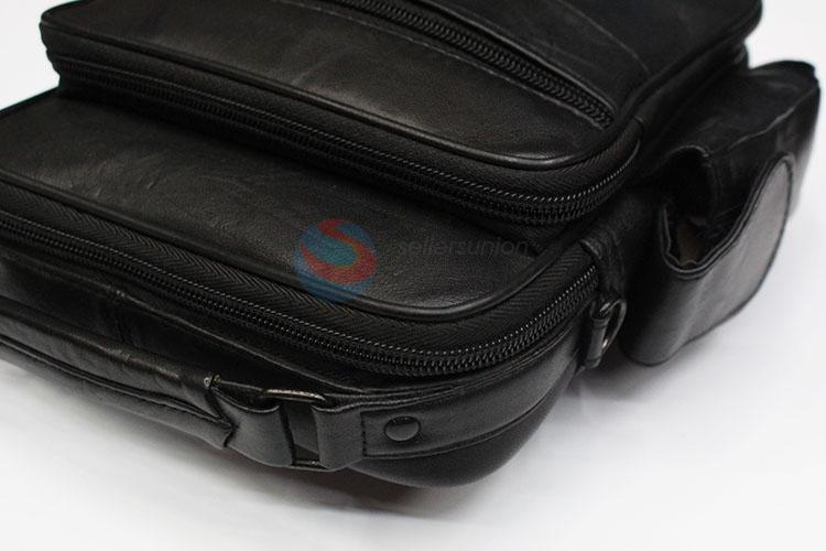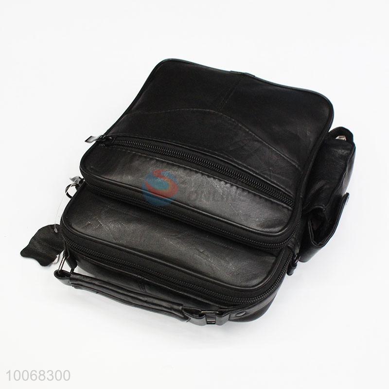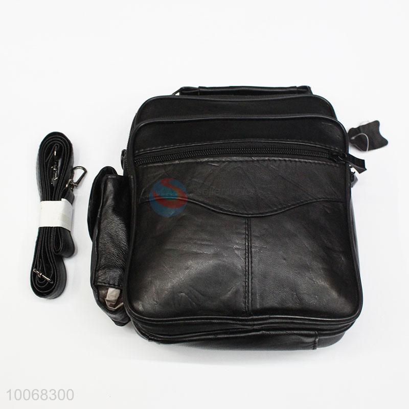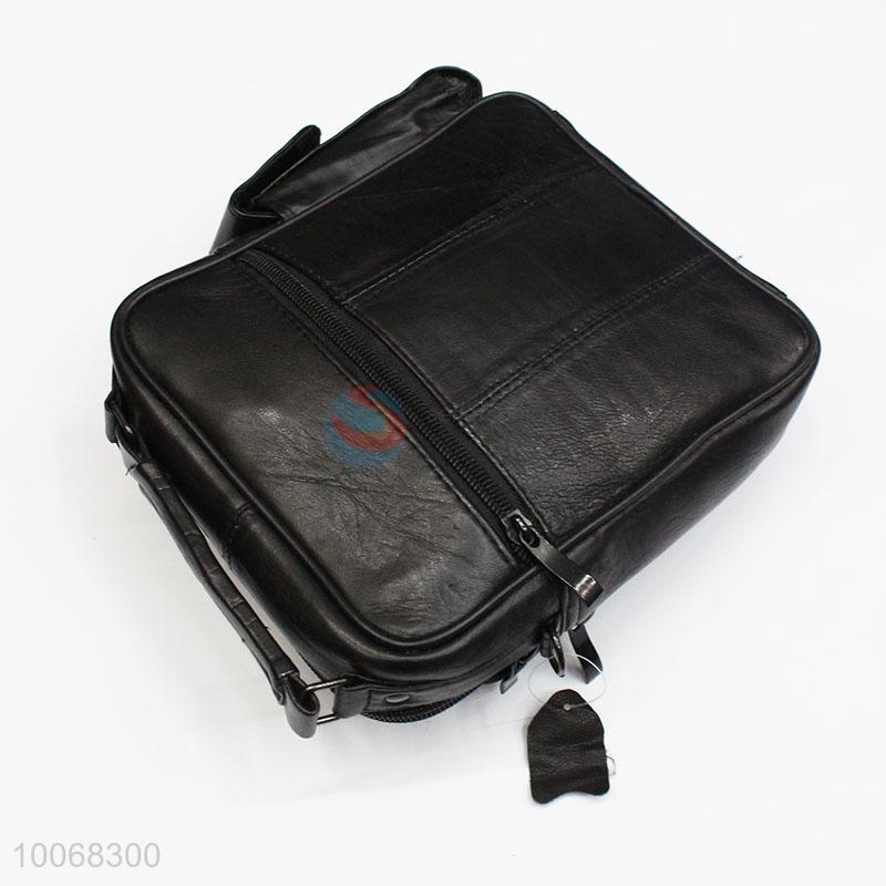 Black leather coin purse messenger bag with shoulder straps
