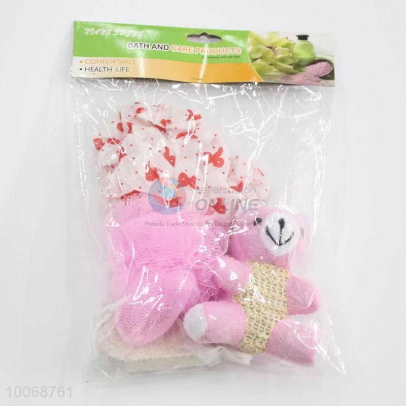 4pcs/set pink animal bath cap/bath ball/pumice stone