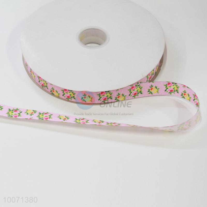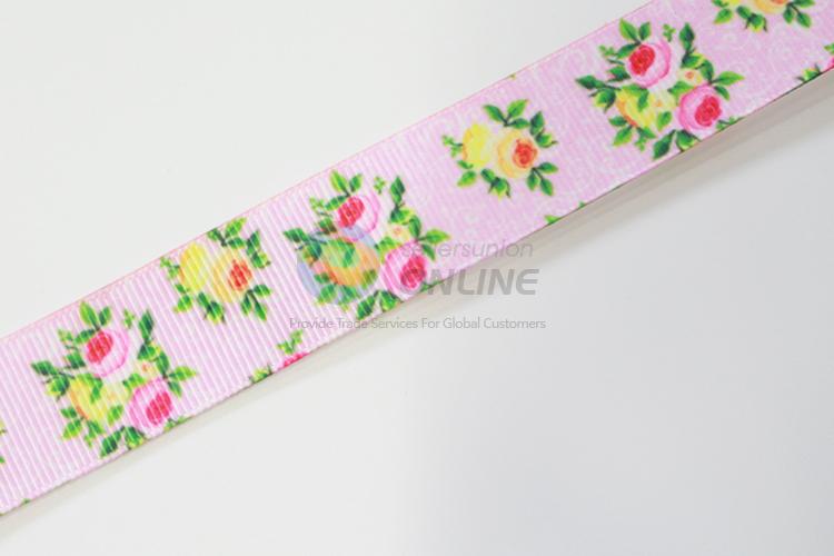 Pink flower pattern polyester ribbon