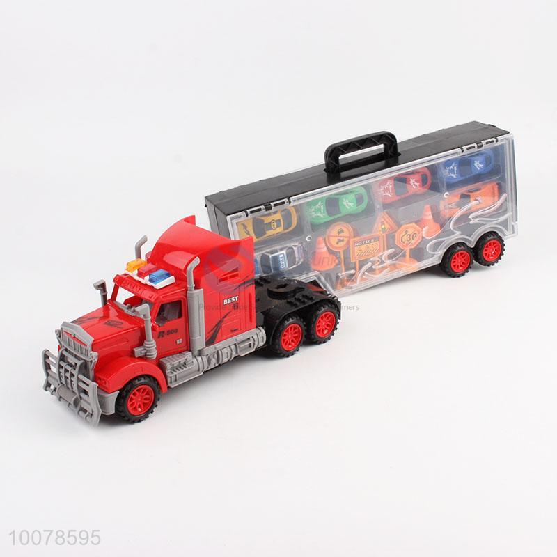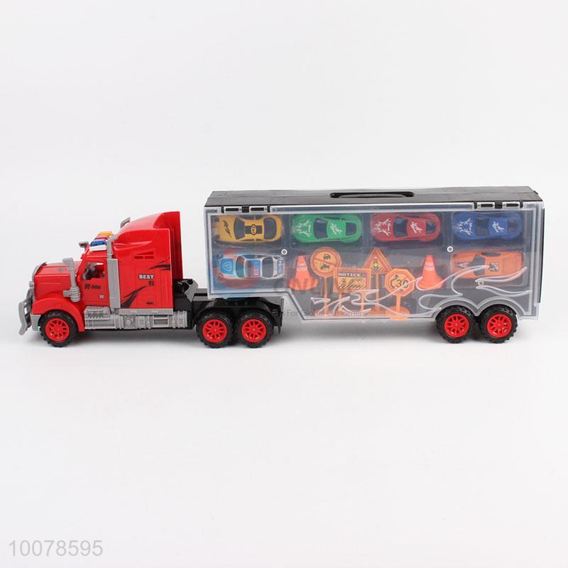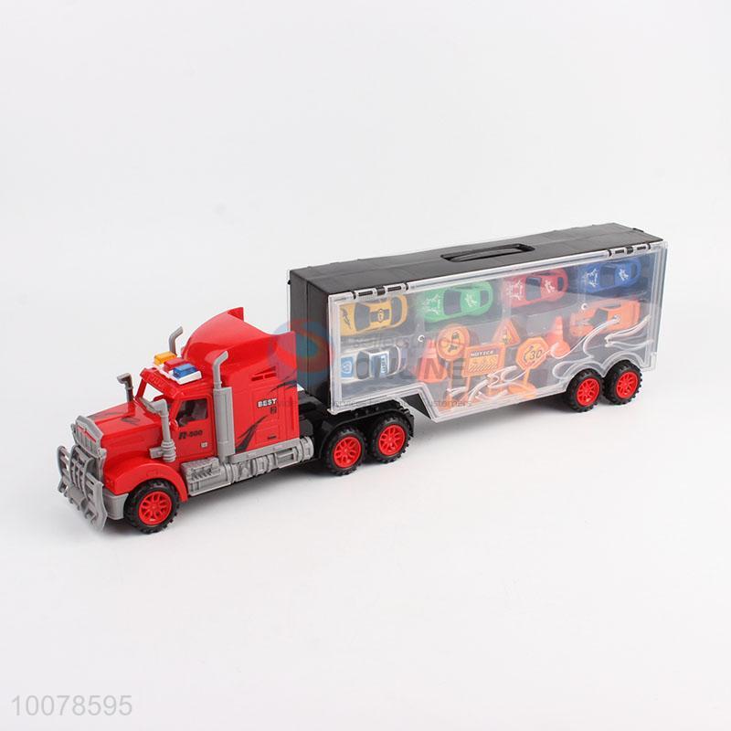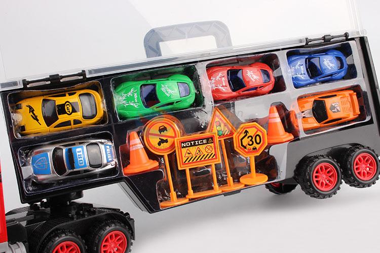 Large engineering car container truck with 6 plastic mini car kids toy/boy gifts car