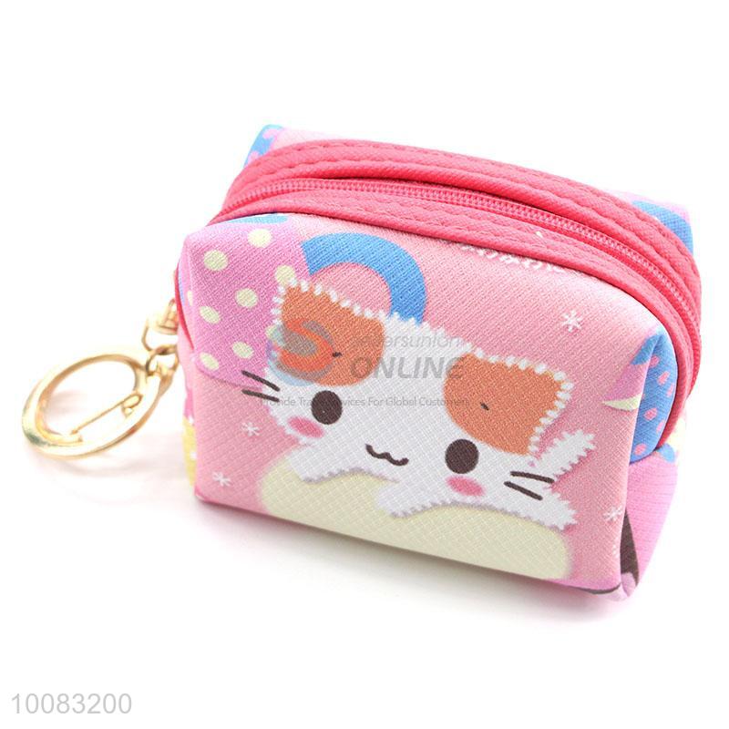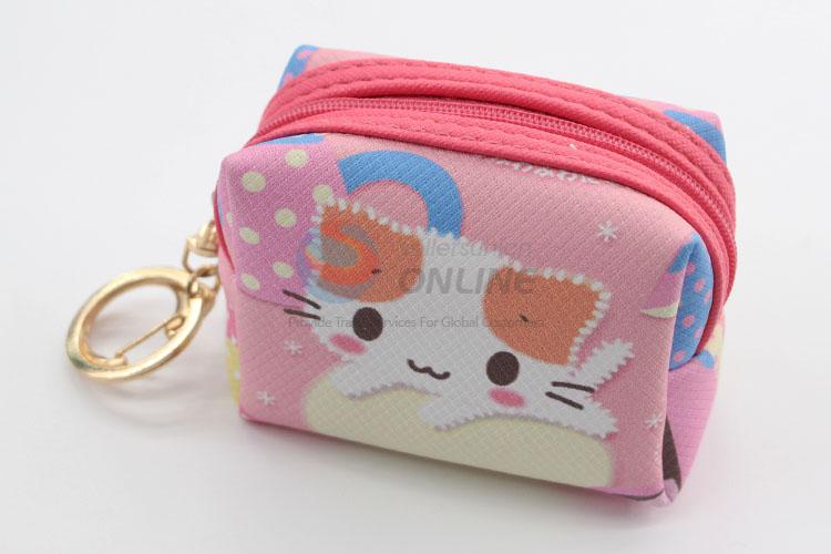 Cute cat printed mini coin purse for girl