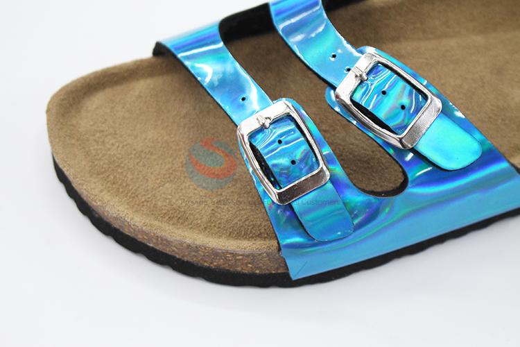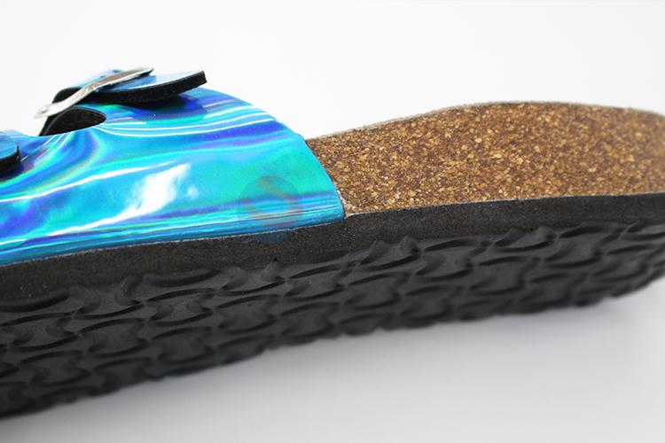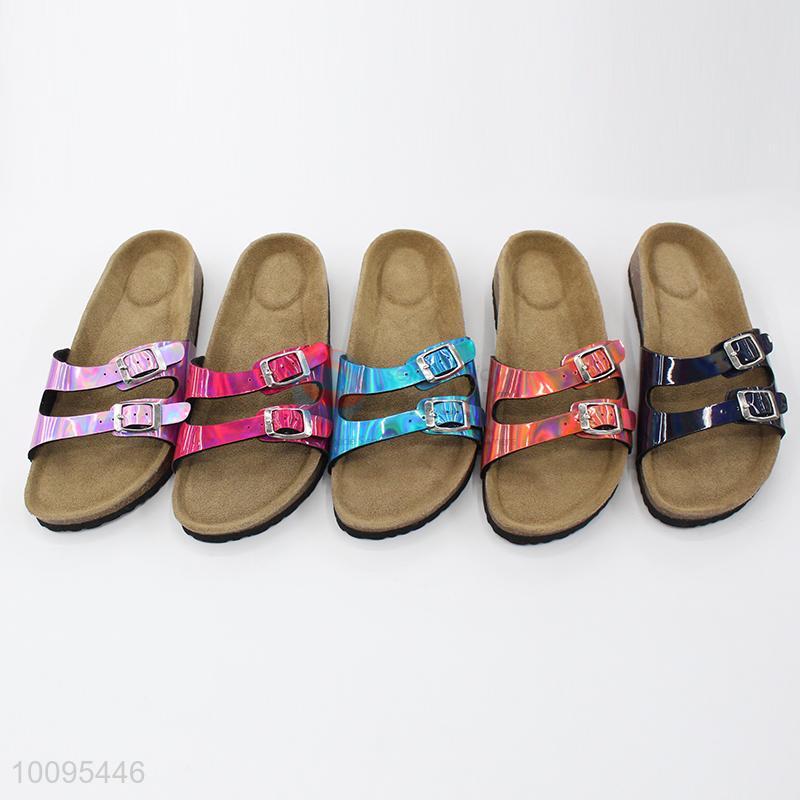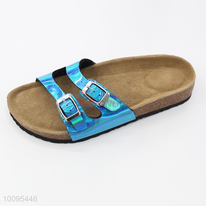 Two buckles cork foot bed slippers for lady