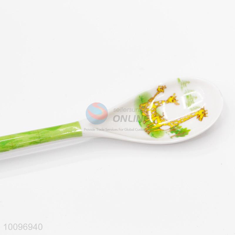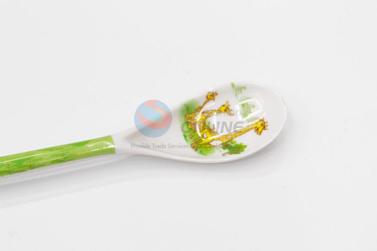Green Long Handle Melamine Baby Feeding Spoons