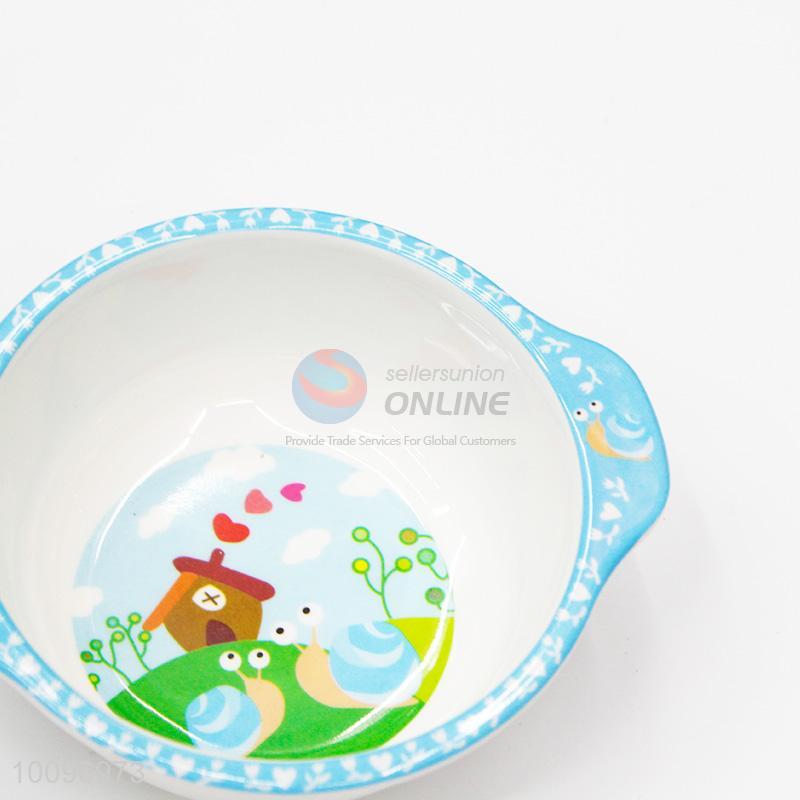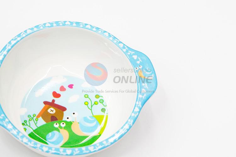 Cute Blue Cartoon Kid's Rice Soup Bowl with Handle