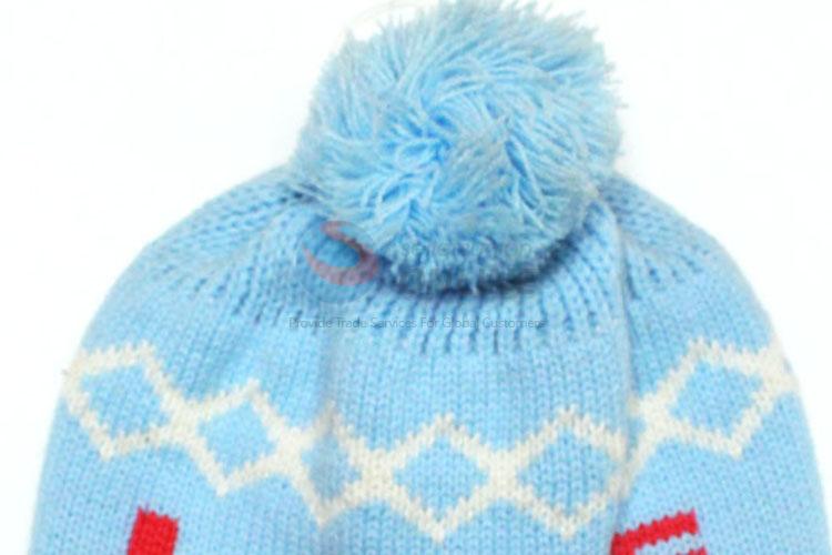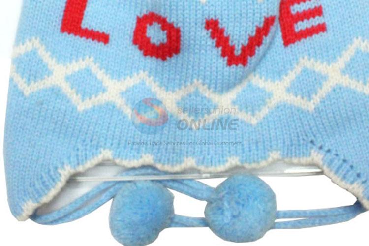 Children ear flap cap woven with top ball warm hat