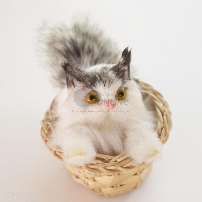 Cute Mini Imitated Cat With Basket For Decoration